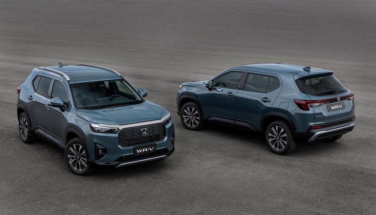 O novo WR-V tem carroceria inédita, projetada com alta rigidez estrutural e dimensões que garantem amplo espaço interno. As linhas retas e o capô alongado reforçam a percepção de porte elevado, enquanto a traseira alta, com lanternas em LED conectadas, evidencia a linguagem visual da nova geração de SUVs da marca. O interior segue o mesmo conceito, com design horizontal e soluções funcionais, como painel TFT de 7 polegadas e central multimídia touchscreen de 10 polegadas compatível com Android Auto e Apple CarPlay sem fio.