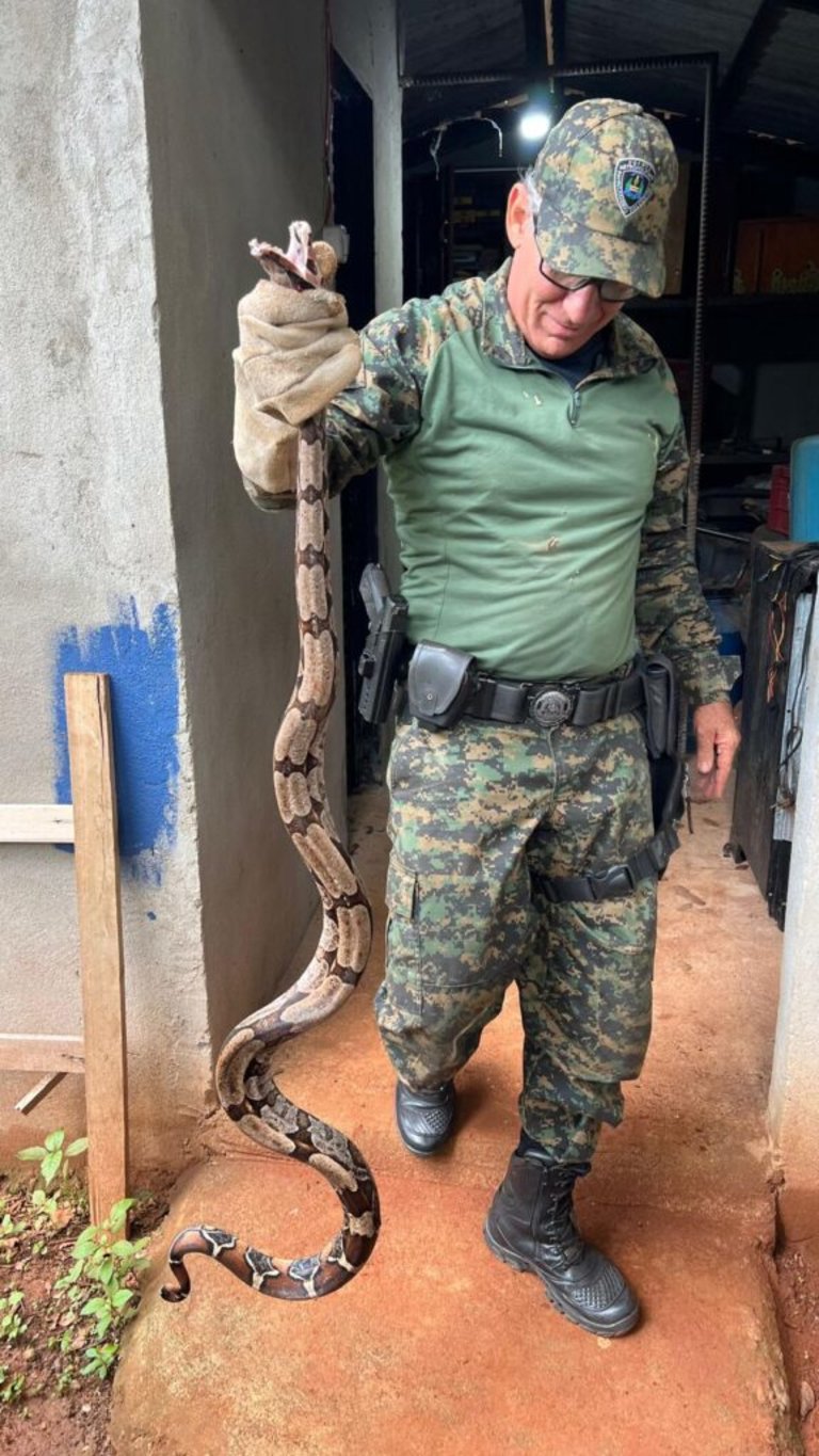 No local, foram empregadas técnicas apropriadas de manejo seguro para a retirada do réptil, não peçonhento, para preservação da integridade do animal e na proteção da moradora. Os agentes verificaram que a serpente não apresentava ferimentos aparentes ou sinais de debilidade.