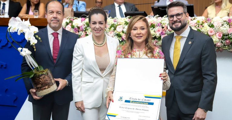 Outro momento marcante da sessão foi a homenagem à ex-senadora Kátia Abreu, que recebeu o Título de Cidadania Tocantinense. O deputado destacou a trajetória da líder política, que há 40 anos chegou ao Tocantins com dois filhos pequenos, grávida da caçula e se tornou uma das maiores responsáveis pela projeção do Estado no cenário político nacional.